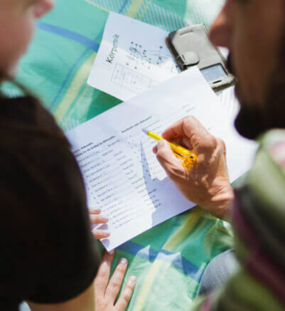 The gracious entry foyer leads to an open kitchen with custom stained walnut cabinetry, granite countertops, and a built-in dining banquette (in select one bedroom homes).